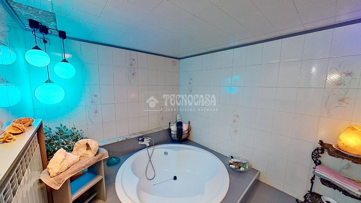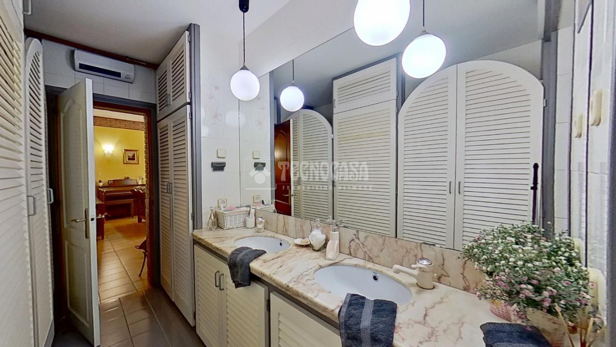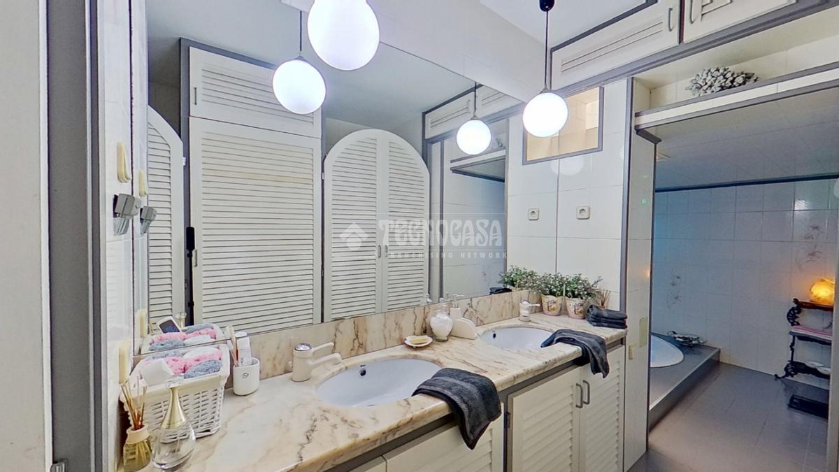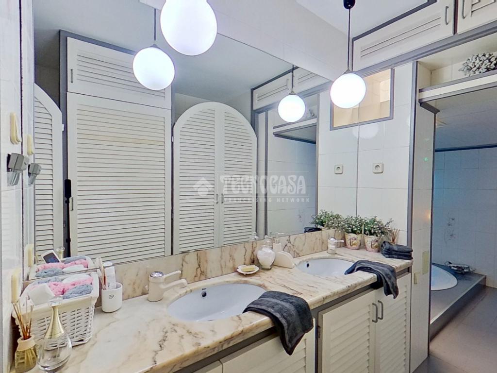 - Dos baños: uno completo con bañera redonda y doble pica, y un aseo adicional con bidet y salida directa a una terraza privada.