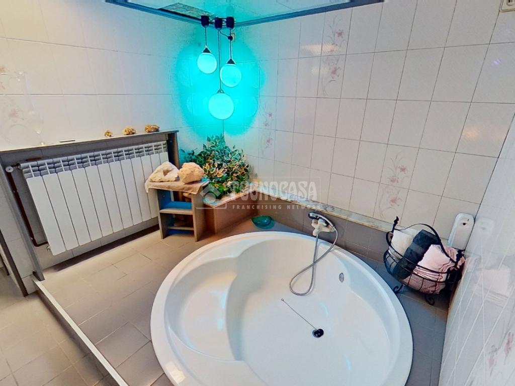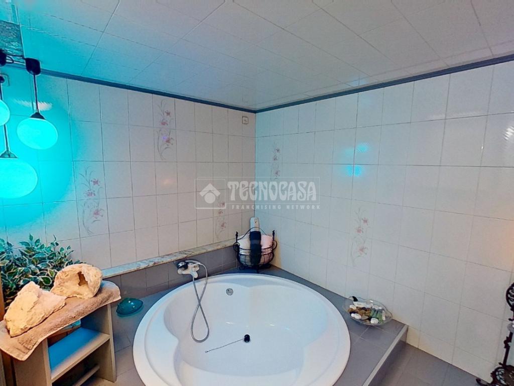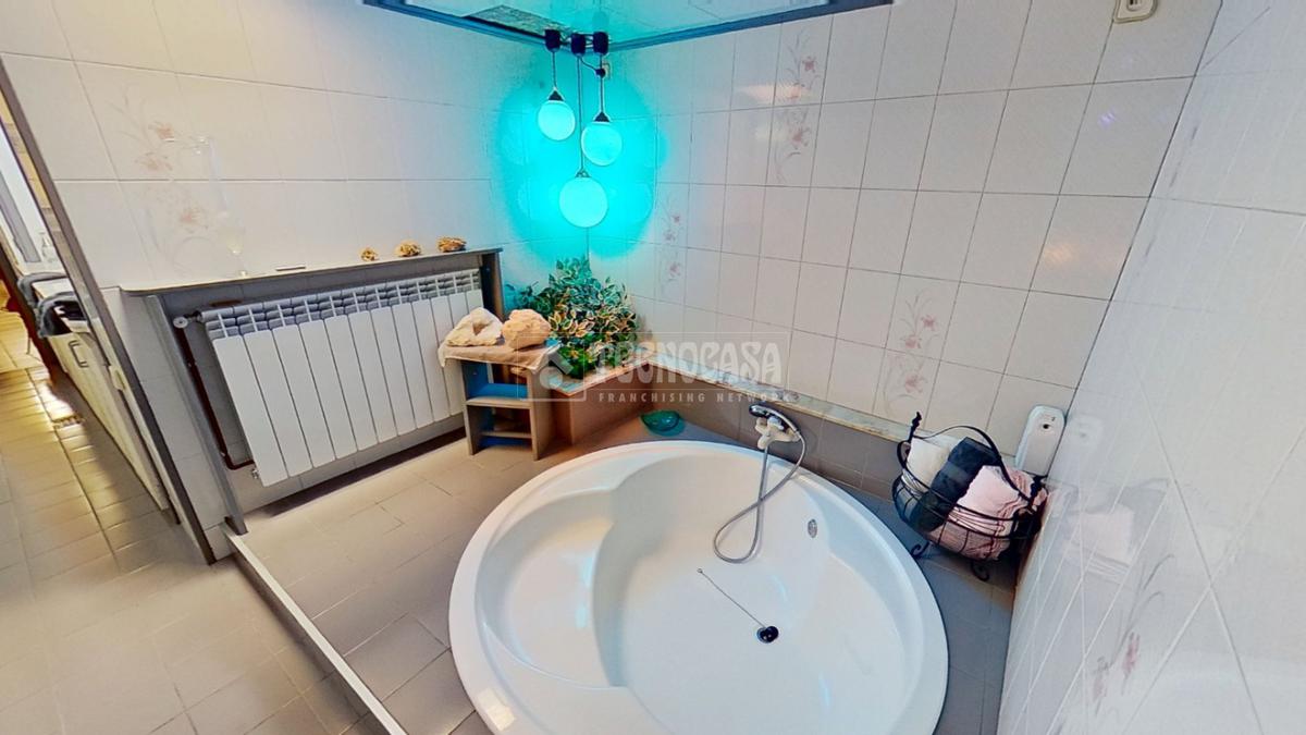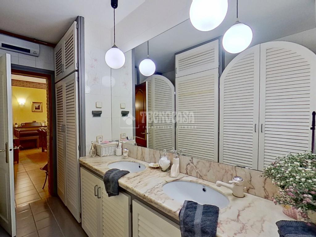 - Dos baños: uno completo con bañera redonda y doble pica, y un aseo adicional con bidet y salida directa a una terraza privada.